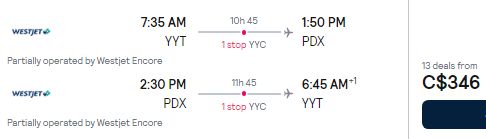 St. John's to Portland, Oregon - $337 (CB) to $492 CAD roundtrip including taxes